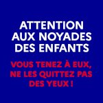 Aussi, pour sensibiliser le grand public, et alerter les parents sur l’importance d’assurer une surveillance efficace des baignades avec les enfants, nous vous invitons à diffuser à partir du 7 juillet et jusqu’au 22 août une campagne de prévention des noyades, réalisée à l’initiative des ministères chargés de la Santé et des Sports, en partenariat avec l’Institut national de la consommation (INC), avec :
